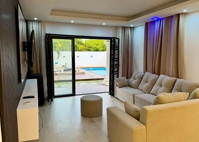 Deze villa is gelegen binnen 2 km van gebedshuizen zoals de Notre Dame Auxiliatrice. Gasten kunnen ook een bezoek brengen aan het La Cuvette Openbare Strand, gelegen op 10 minuten rijden verderop.